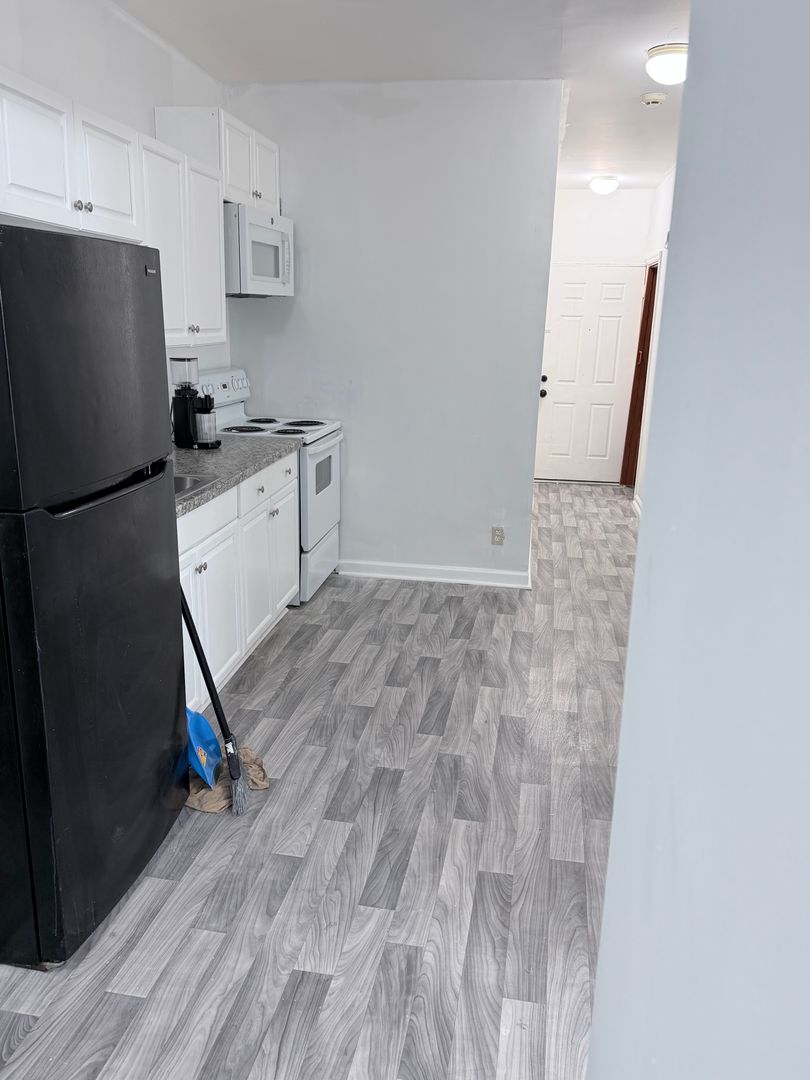 Since We are completely remodeling this 3 bedrooms with closets and it will feature new kitchen and a full Eat in kitchen. Some of the attached photos show the work we did in the apartments in the same building and some show the in-progress work. A laundry hook up is an option